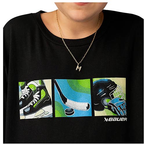 Bauer Graphic Tee 1 T-Shirt Junior i svart ger unga spelare en hockeyinspirerad stil i vardagen. Med sin hockeyinspirerade grafik mitt pa bröstet far tröjan ett sportigt utseende och kombinerar en avslappnad design med skön komfort.